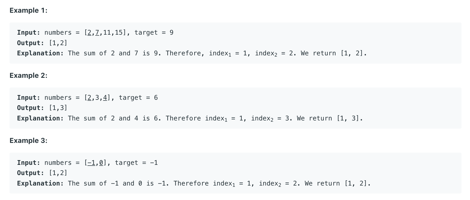 def twoSum(self, numbers: List[int], target: int) -> List[int]: