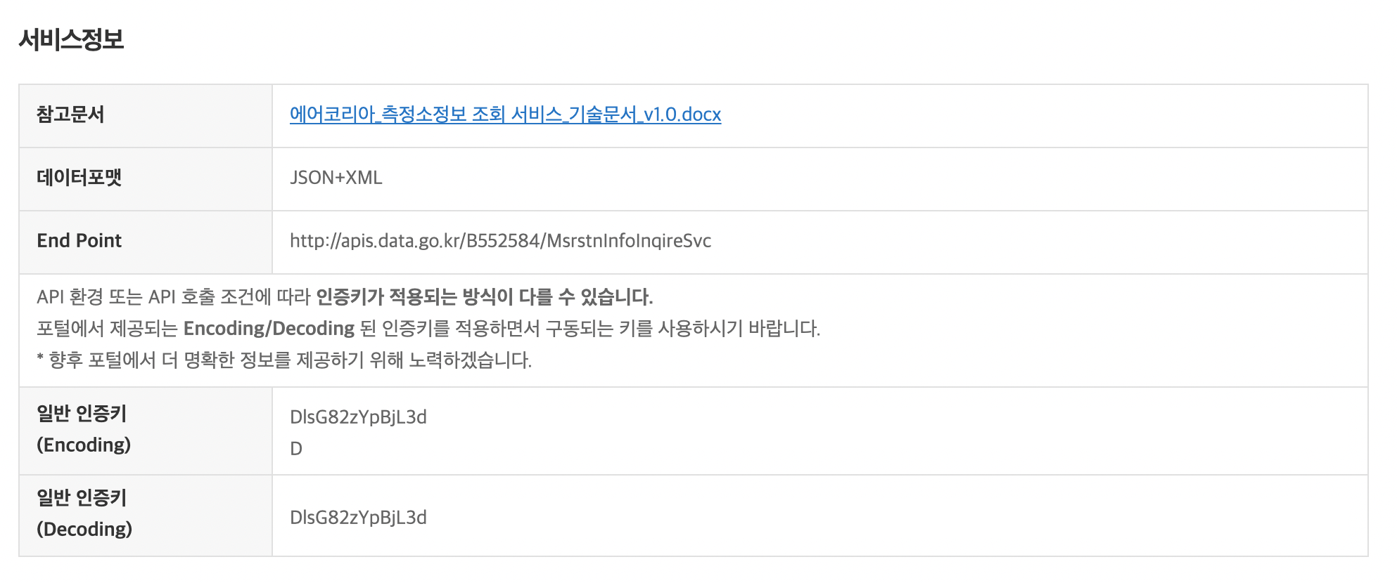 ๊ณต๊ณต๋ฐ์ดํฐ ํฌํธ์์ ํ๊ตญํ๊ฒฝ๊ณต๋จ์์ ์ ๊ณตํ๋ ๋๊ธฐ์ง ์ ๋ณด๋ฅผ ํตํด์ ๊ฐ๋จํ๊ฒ ์ธก์ ์๋ณ ๋๊ธฐ์ง ์ ๋ณด๋ฅผ ํ์ธํ ์ ์๋ ์ฑ์ ๋ง๋ค์ด๋ณด๋ ค๊ณ ํ๋ค.