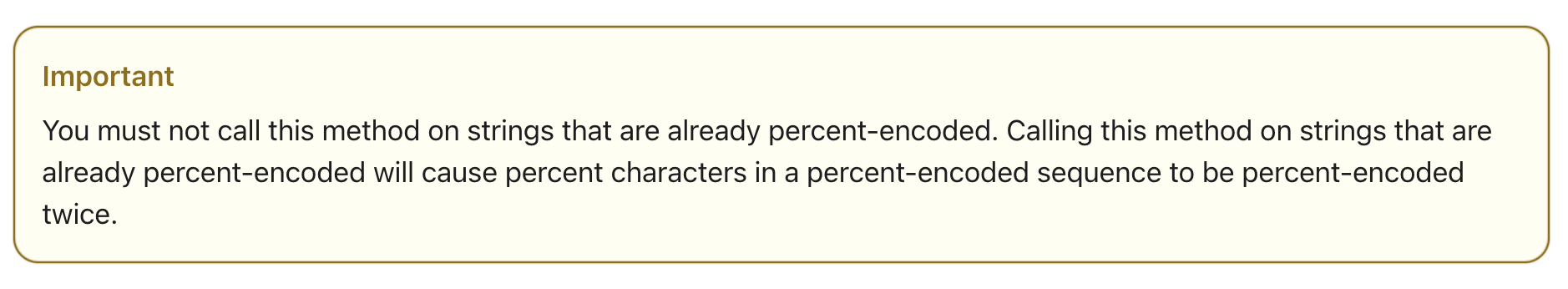 guard let encodedURL: URL = URL(string: baseAndPercentEncodingURL) else { return }