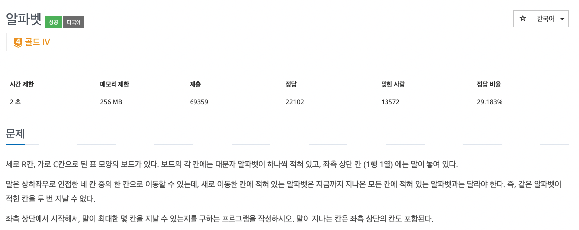 ๋น๊ต์ ๊ฐ๋จํ ๋ฐฑํธ๋ํน ๋ฌธ์ ์ด๋ค. ๋ฐฉ๋ฌธํ์ง ์์ ์ํ๋ฒณ ์ผ ๊ฒฝ์ฐ์ DFS ๋ฅผ ์งํํ๋ฉด ๋๋ค. ๋ฌธ์ ๋ฅผ ์ฒ์ ์ ํ์ ๋๋ ๋ฐฉ๋ฌธ ์ฌ๋ถ๋ฅผ ํ์ธํ๋ 2์ฐจ์ ๋ฐฐ์ด๊ณผ ๋ฐฉ๋ฌธํ ์ํ๋ฒณ์ ์ ์ฅํ๋ ์ผ์ฐจ์ ๋ฐฐ์ด์ ๊ฐ๊ฐ ์ ์ธํด์ ์งํํ์๋ค. ์๋ก ๋ฐฉ๋ฌธํ๋ ์ขํ๊ฐ ์ด๋ฏธ ๋ฐฉ๋ฌธํ ์ํ๋ฒณ์ผ ์๋ ์์ด์ ์ด๋ ๊ฒ ๋ฐ๋ก ์ ์ธํ์๋ค. ํ์ง๋ง ์ด๋ด ํ์๊ฐ ์์๋ค. ๋ฐฉ๋ฌธํ ์ํ๋ฒณ์ ์ ์ฅํ๋ ์ผ์ฐจ์ ๋ฐฐ์ด๋ง ์์ด๋ ์ถฉ๋ถํ๋ค. ์ด์ ๋ ๊ฐ๋จํ๋ค.