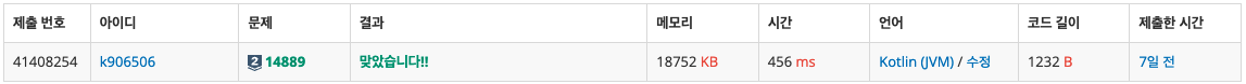| [๋ฐฑํธ๋ํน / Kotlin] BOJ 14888 - ์ฐ์ฐ์ ๋ผ์๋ฃ๊ธฐ (0) | 2022.03.31 |