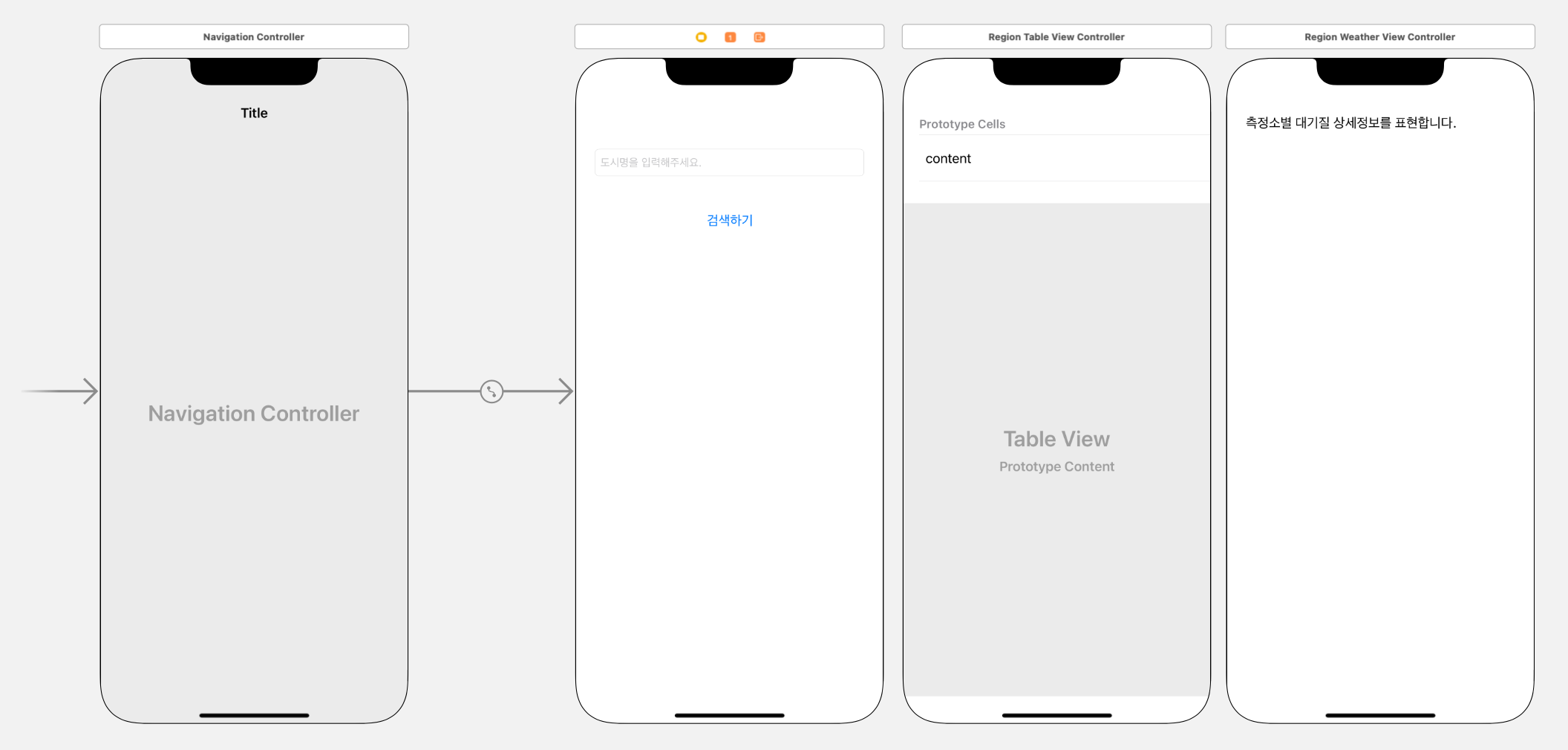 push ๋ฐฉ์์ผ๋ก ํ๋ฉด ์ด๋์ ๊ตฌํํ์ผ๋ฉฐ, ๊ฒ์ํ๊ธฐ ๋ฒํผ์ ํด๋ฆญํ๋ฉด ์ด๋ํ๋ ํ์ด์ง์ธ RegionTableViewController์ ์ ๋ ฅํ ์ง์ญ๋ช ์ ์ ๋ฌํ๊ธฐ ์ํด ViewController๋ฅผ ์ธ์คํด์คํํ๊ณ ๊ฐ์ ์ ๋ฌํ๋ ๋ฐฉ์์ผ๋ก ๊ตฌํํ๋ค.