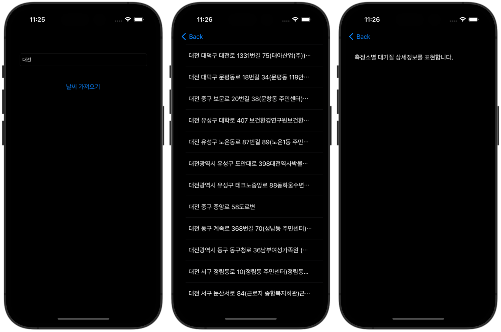 ๊ณต๊ณต๋ฐ์ดํฐ ํฌํธ์์ ํ๊ตญํ๊ฒฝ๊ณต๋จ์์ ์ ๊ณตํ๋ ๋๊ธฐ์ง ์ ๋ณด๋ฅผ ํตํด์ ๊ฐ๋จํ๊ฒ ์ธก์ ์๋ณ ๋๊ธฐ์ง ์ ๋ณด๋ฅผ ํ์ธํ ์ ์๋ ์ฑ์ ๋ง๋ค์ด๋ณด๋ ค๊ณ ํ๋ค.