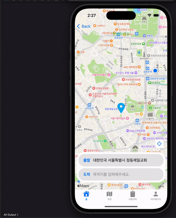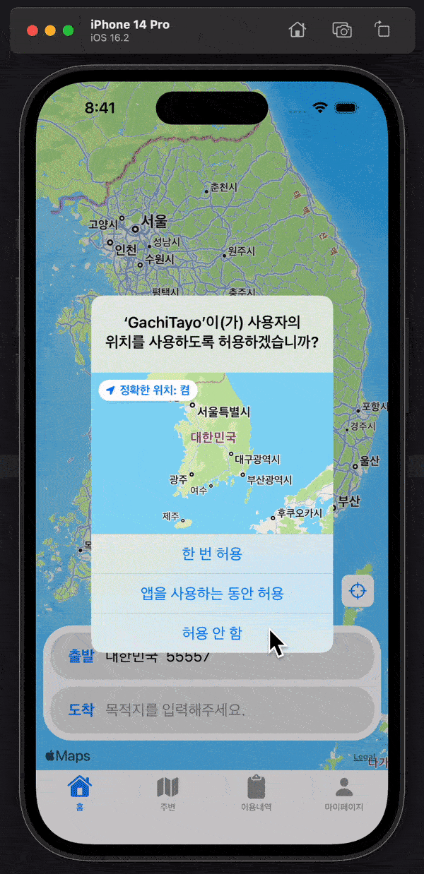 ๋ํ ์ผ๊ธฐ ์์ฑ ํ์ด์ง์์ MapView๋ฅผ .onSheet(๋๋ .FullScreen)๋ก ์ ์ฉํ๊ณ ์์๋ค.