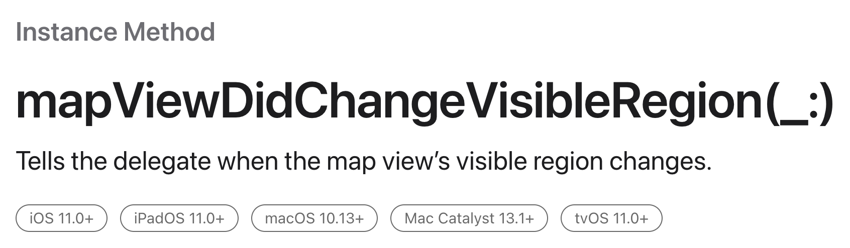 ์๋, ๊ฒฝ๋๊ฐ ์กฐ๊ธ์ด๋ผ๋ ๋ฐ๋๋ฉด mapViewDidChangeVisibleRegion ๋ฉ์๋๊ฐ ํธ์ถ๋๋ฉด์