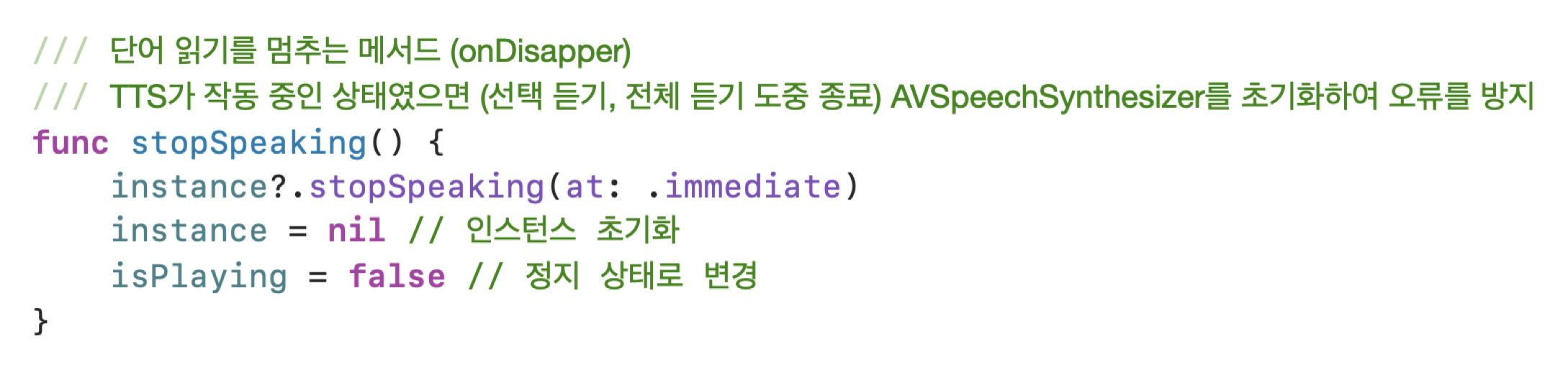 ๋ฃ) AVSpeechSynthesizer๋ฅผ ์ด๊ธฐํํ์ฌ ์ค๋ฅ๋ฅผ ๋ฐฉ์ง