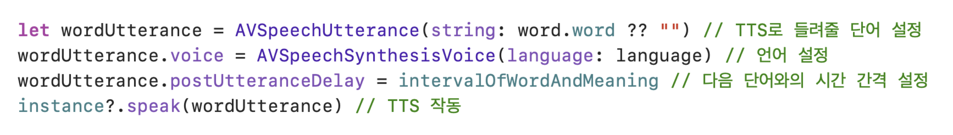 instance?.speak(wordUtterance) // TTS ์๋