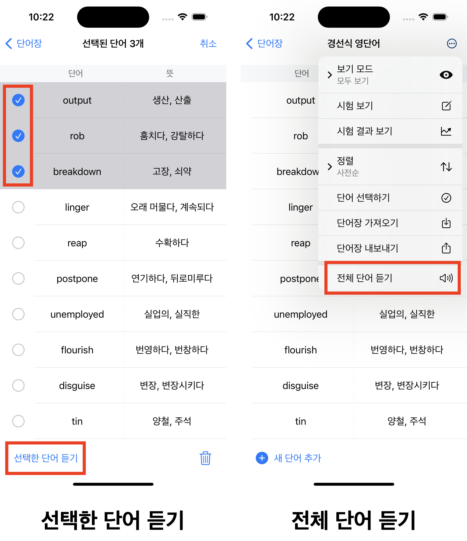 1๊ฐ์ ๋จ์ด๋ง ๋ค์ ๋(1๋ฒ)๋ TTS๊ฐ ์คํ, ์ข ๋ฃ๋ ์ดํ์ ๋ค์ TTS๋ฅผ ์คํํ์ ๋ ์๋ฌด ๋ฌธ์ ๊ฐ ์์๋ค.
