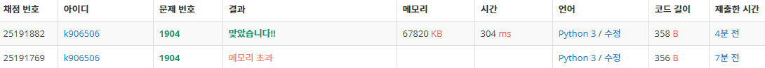 dp๋ก ๊ตฌํํ๊ธฐ์ ๋ฌด์กฐ๊ฑด ํต๊ณผ๋ผ๊ณ ์๊ฐํ๋๋ฐ ๋ฉ๋ชจ๋ฆฌ ์ด๊ณผ๊ฐ ๋์์ ๋นํฉํ๋ค.