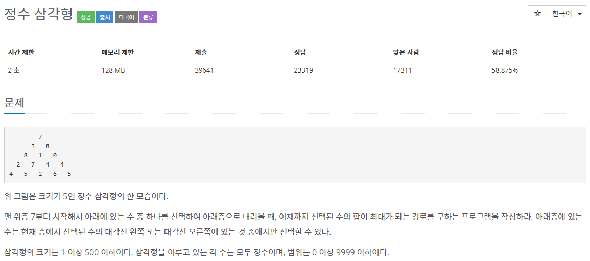 dp[0][0] = triangle[0][0];