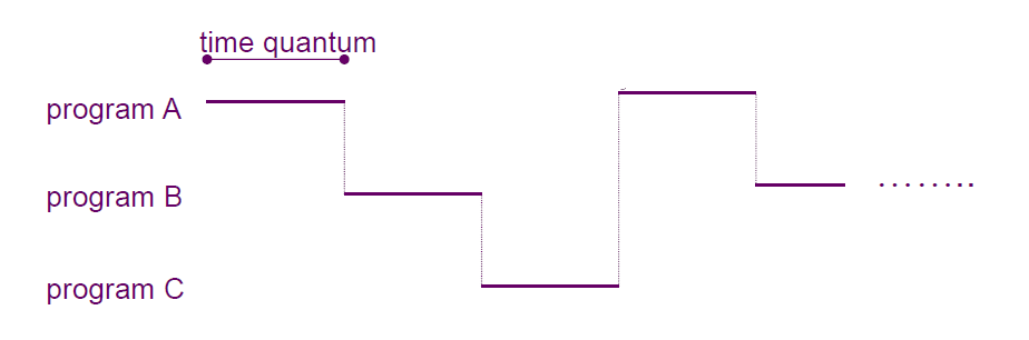 ์ผ์ ํ ์๊ฐ ๊ฐ๊ฒฉ(time slice)๋ง๋ค ํ๋ก๊ทธ๋จ์ด ๋์๊ฐ๋ฉด์ ์คํ.