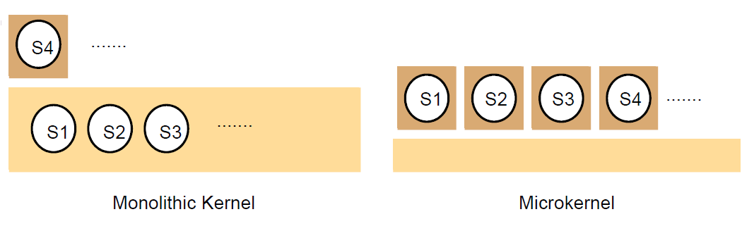๋ด๋ถ์ ์ผ๋ก ์ต์ํ์ ๊ธฐ๋ฅ๋ง ๋ด๊ณ ์๋ค. -> Process Management, Basic Memory Management