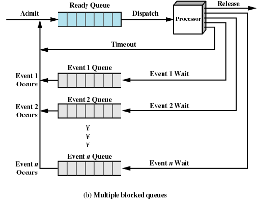Block : ์คํ ์ํฌ ์ ์๋ ์ํ. ํน์ ์ด๋ฒคํธ๋ฅผ ๊ธฐ๋ค๋ฆฌ๋ ์ํ. block ์ญ์ queue์ ์ ์ฅ.