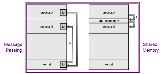 message passing๊ณผ shared memory, remote procedure call์ด ์์.