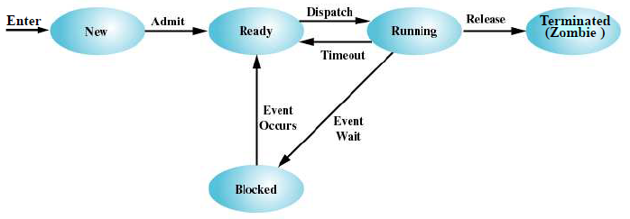 Terminate :์ข ๋ฃ๋ ์ข๋น์ํ. ํ๋ก์ธ์ค๋ ์ข ๋ฃ๋์ง๋ง PCB, ์ฆ ํ๋ก์ธ์ค์ ๊ดํ ์ ๋ณด๋ ๋ฐ๋ฉ๋์ง ์์. Wait์ ํตํด ์ ๊ฑฐ.