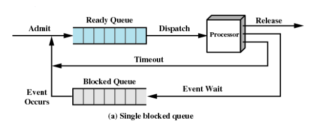 Block : ์คํ ์ํฌ ์ ์๋ ์ํ. ํน์ ์ด๋ฒคํธ๋ฅผ ๊ธฐ๋ค๋ฆฌ๋ ์ํ. block ์ญ์ queue์ ์ ์ฅ.