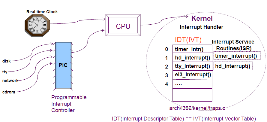 ์ ๋ฆฌํ์๋ฉด IDT์์ ISR์ ์์ฑํ๊ณ ์์คํ ์ฝ ํ ์ด๋ธ์์ ์ด๋ฅผ ๋ค์ ์ฒ๋ฆฌ.