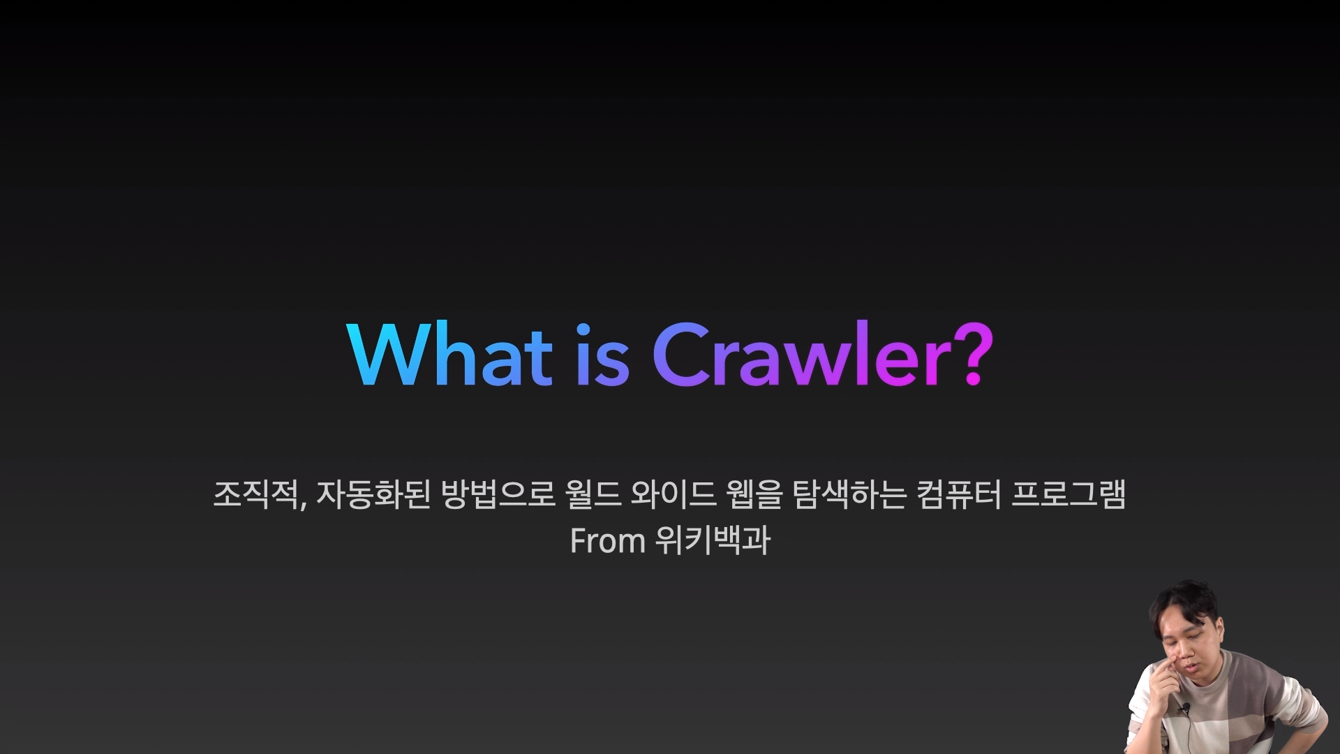 ํ์ง๋ง ์๋ชป ์๊ณ ์๋ ๊ฒ์ด ์๋๋ฐ ์ฐ๋ฆฌ๊ฐ ํํ ๋งํ๋ ์น ํฌ๋กค๋ฌ๋ ์ฌ์ค ์น ์คํฌ๋ํผ๊ฐ ์ ํํ ํํ์ด๋ค.