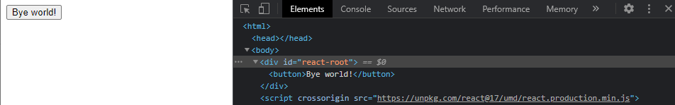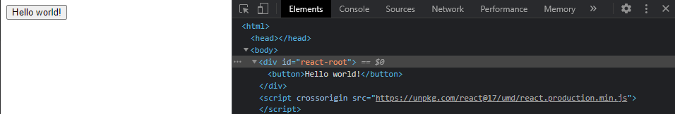 ReactDOM.render(React.createElement(helloWorldButton), rootContainer);
