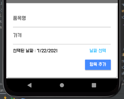 _presentDataPicket์ด ๋ ์ง ์ ํ ๋ฒํผ์ ๋๋ ์ ๋ ์ด๋ฅผ ์ฒ๋ฆฌํ๋ ๋ถ๋ถ์ด๋ค. ์ฐ์ ํด๋น ๋ฒํผ์ ํด๋ฆญํ์ ๋ DatePicket๊ฐ ์คํ๋๋ฉด์ ๋ฌ๋ ฅ์ด ๋์ด์ง๋๋ฐ ์ด ๋ ์ด๊ธฐ ๋ ์ง๋ฅผ ๊ณ ๋ฅผ ์ ์๋ค. ์ด ๋ถ๋ถ์ด ๋ฐ๋ก initialDate๊ฐ ๋๋ค. FristDate๋ ์ ํ ๊ฐ๋ฅํ ์ต์(?) ๋ ์ง, lastDate๋ ์ ํ ๊ฐ๋ฅํ ์ต๋(?) ๋ ์ง์ด๋ค. .then์ ์ด์ฉํ์ฌ ์ ํ๋ ๋ ์ง๊ฐ ์๋ ๊ฒฝ์ฐ ์ค๋ ๋ ์ง๋ฅผ ๊ทธ๋๋ก returnํ๊ณ ์ ํ๋ ๊ฒฝ์ฐ ํด๋น ๋ ์ง๋ฅผ returnํ๋ค. ์ด๋ ๊ฒ ๋ ์ง๋ฅผ ์ ํํ๊ณ ํ๋จ์ ํญ๋ชฉ ์ถ๊ฐ ๋ฒํผ์ ํด๋ฆญํ๋ฉด _submitData๊ฐ ์คํ๋๋ฉด์ transactionList์ ์๋ก์ด ์๋น ํญ๋ชฉ์ด ์ถ๊ฐ๋๋ค.