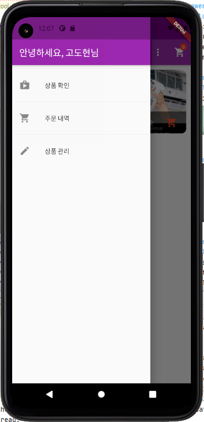 drawer๋ ๋ฐ๋ก ๋ง๋ค์ด์ค AppDrawer ํด๋์ค๋ฅผ ๋ฃ์ด์คฌ๋ค.